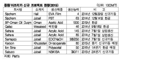 중동 및 아프리카는 2015년에도 신규 프로젝트를 대거 추진함에 따라 저가의 원료코스트를 강점으로 아시아 시장에서 중동의 공세가 강화될 것으로 예상되고 있다.