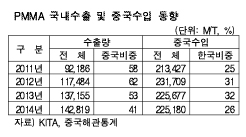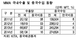 2014년 중국 수출비중 41%로 급락 … MMA는 16%로 사상최저 기록