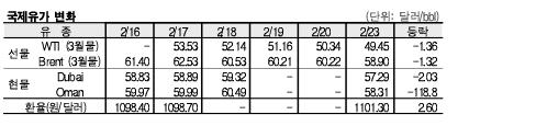 2월23일 국제유가는 리비아의 송유관 가동 재개, 미국의 경기지표 악화, 달러화 강세 등으로 하락했다.