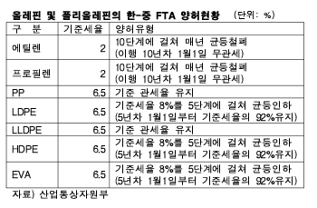 에틸렌‧프로필렌 10단계 균등철폐 … PP‧LLDPE는 세율 유지
