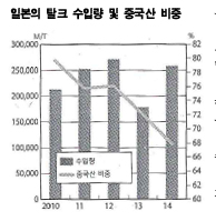 2014년 E/L 75만톤에 67만톤 그쳐 … 일본 수입비중 68%로 하락