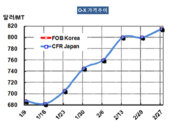 [석유화학] O-X, 중국 강세에 1000달러 근접.. | 2025-02-21 |