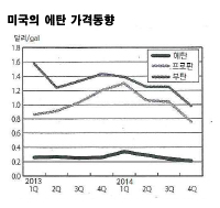 미국산 에탄(Ethane)이 국제유가 폭락으로 석유화학원료로서의 경쟁력을 잃어가고 있다.