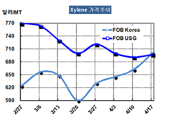 M-X 가격은 4월17일 FOB Korea 톤당 700달러로 38달러 급등했다.
