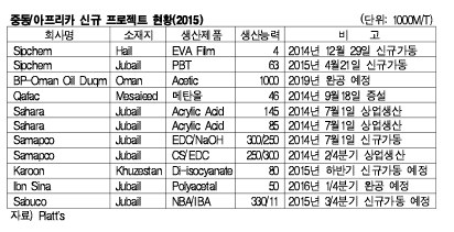 중동 및 아프리카는 2015년에도 신규 프로젝트를 대거 추진함에 따라 저가의 원료코스트를 강점으로 아시아 시장에서 공세가 부각되고 있다.