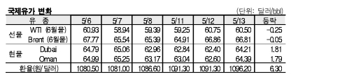 5월13일 국제유가는 미국 경기지표의 부진, 공급과잉 우려 등으로 하락했다.