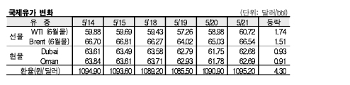 5월20일 국제유가는 미국·중국의 경기지표 개선, 중동지역의 정정불안 고조 등으로 급등했다.
