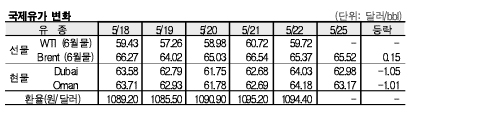 5월25일 국제유가는 중동의 지정학적 불안 고조 등으로 상승했다.