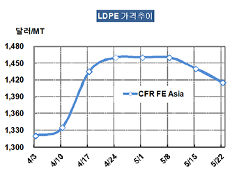 CFR FE Asia 1415달러로 25달러 급락 … 에틸렌 하락세도 뚜렷 화학뉴스 2015.05.26 LDPE 가격은 5월20일 CFR FE Asia 톤당 1415달러로 25달러 급락했다.