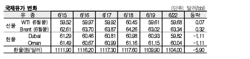 6월22일 국제유가는 그리스 디폴트 우려 완화 등으로 상승했다.
