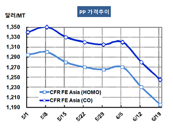 표, 그래프: < PP 가격추이 > <화학저널 2015/06/23> |
