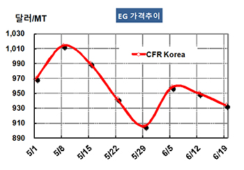 표, 그래프: < EG 가격추이 > <화학저널 2015/06/23> |