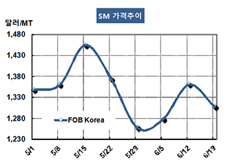 표, 그래프: < SM 가격추이 > <화학저널 2015/06/24> |