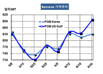 벤젠(Benzene) 시세는 업-다운스트림의 약세에도 상승했다.
