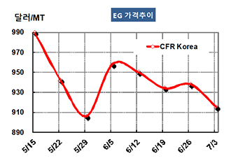표, 그래프: < EG 가격추이 > <화학저널 2015/07/07> |