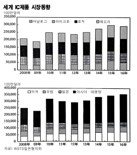 농약, 의약 등 업종을 불문하고 사물인터넷(IoT)화가 진행됨에 따라 반도체 수요가 증가할 것이 확실시되고 있기 때문이다. 반도체 기술 향상을 목표로 하고 있는 미국 세마테크(SEMATECH)는 장기적으로 반도체 공급부족이 표면화될 가능성을 제기하고 있다. ![]() 글로벌 반도체 시장은 현재 스마트폰용 로직과 메모리만 수급타이트가 발생하고 있으나 IoT가 본격화됨으로써 아날로그, 개별 반도체까지 수요가 확대됨에 따라 모든 반도체 공급능력이 부족해질 것으로 예상되고 있다. 이에 따라 칩 코스트를 절감하기 위해 회로를 미세화하는 EUV(Extreme Ultra Violet) 노광과 실리콘 웨이퍼(Silicon Wager) 자체의 크기를 확대하는 대구경화 기술이 주축을 이루고 있는 차세대 리소그래피 기술(NGL)이 주목받고 있다. 특히, EUV 노광이 우선시되고 있는 가운데 실용화에 장벽으로 자리 잡고 있는 광원출력 부족은 일본 레지스트 기술을 통해 보완하고 있는 것으로 나타났다. EUV 노광기는 연속 운전이 어려운 단점이 있으나 개발기업인 네덜란드 ASML은 24시간당 1000매 이상의 처리능력 실현을 목표로 하고 있다. IoT는 일본시장에 가장 긍정적인 영향을 미칠 것으로 예상되고 있다. 일본은 다양한 산업이 집적해 있는 가운데 반도체 전공정 능력이 세계 최고 수준으로 성장 발판이 마련되어 있기 때문이다. 글로벌 반도체 메이저 53사가 가입한 세계반도체무역통계기구(WSTS)는 2014년 봄 엔저에 따른 수출 증가, 내수 회복의 영향으로 일본 반도체 시장규모가 3조5300억엔으로 전년대비 4.0% 확대될 것으로 예상했으나 12월 성장률을 7.1%로 상향 조정했다. 또 2015년 0.4%, 2016년 0.9% 확대됨에 따라 2013-2016년 연평균 성장률이 2.7%에 달할 것으로 예상했다. 일본 전자정보기술산업협회(JEITA)는 안전(Security)을 고성장 분야로 주목하고 있다. 정보누출 대책 등 사이버 안전에 대한 글로벌 수요가 2025년 16조9000억엔으로 연평균 9.4% 증가하고, 안전 관련기기 수요도 연평균 8.9% 늘어 2025년 41조7000억엔에 달할 것으로 예측했다. 표, 그래프: < 세계 IC제품 시장동향 > <화학저널 2015/07/09> |