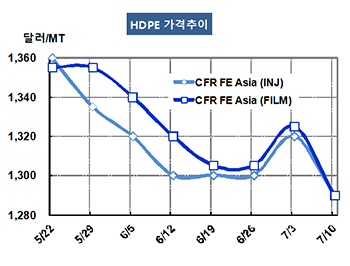 CFR FE Asia 1290달러로 30달러 급락 … 급락현상 지속 우려 화학뉴스 2015.07.13 HDPE(High-Density Polyethylene) 시장은 수요 부진이 장기화되고 있다.