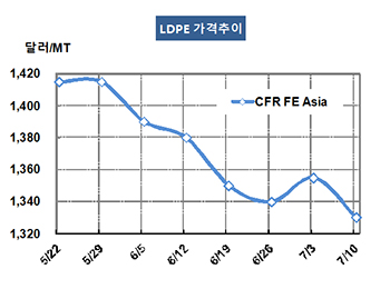 표, 그래프: < LDPE 가격추이 > <화학저널 2015/07/13> |
