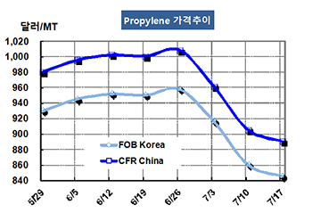 프로필렌(Propylene) 시세는 급락세가 잠잠해지는 양상을 나타냈다.