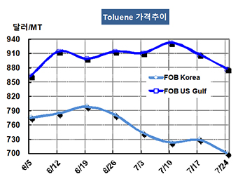 톨루엔(Toluene) 시세는 700달러에 턱걸이했다.
