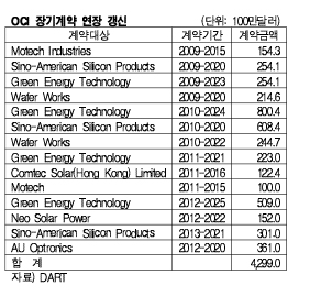 OCI가 잇따라 폴리실리콘(Polysilicon) 장기 공급계약을 변경하거나 계약기간을 연장하고 있다.
