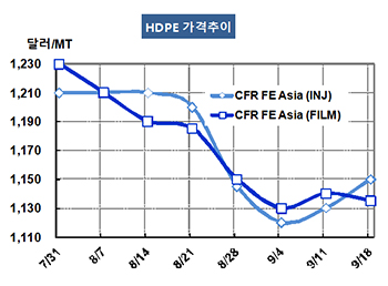 [석유화학] HDPE, 동북아 약세 속 보합세… | 2025-09-15 | ||