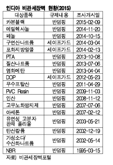 18개 품목 수입규제로 단연 1위 … 인디아산 유입은 증가추세 계속