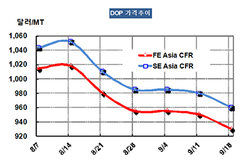 표, 그래프: < DOP 가격추이 > <화학저널 2015/09/25> |