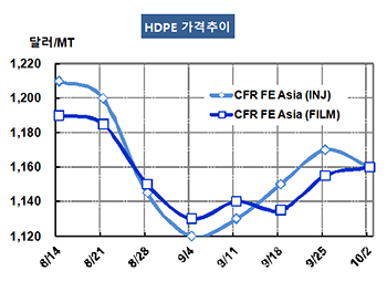 CFR FE Asia 1160달러로 10달러 하락 … 10월 43만톤 정기보수 돌입