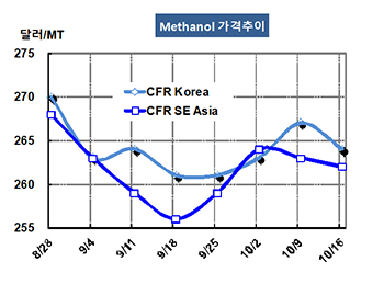 아시아 메탄올(Methanol) 가격이 중국을 중심으로 약세를 이어가고 있다.