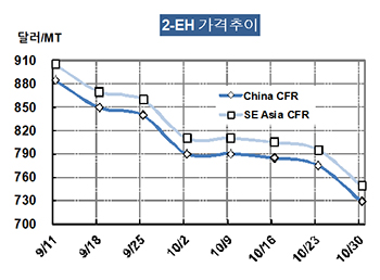 2-EH, CFR China 729달러로 46달러 급락 … DOP는 가동률 90%