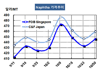 CFR Japan 460달러로 13달러 상승 … 서유럽산 공급 감소도