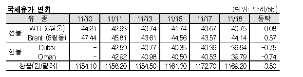 11월18일 국제유가는 미국 달러화 약세 및 미국 증시 상승 등으로 상승했다.