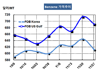 표, 그래프: < Benzene 가격추이 > <화학저널 2015/12/02> |