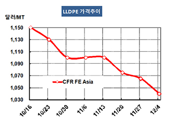 표, 그래프: < LLDPE 가격추이 > <화학저널 2015/12/07> |