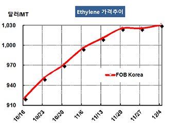 에틸렌(Ethylene)은 약하나 상승세를 재연했다.