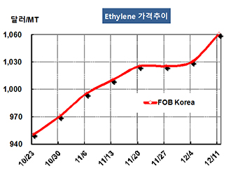 표, 그래프: < Ethylene 가격추이 > <화학저널 2015/12/14> |