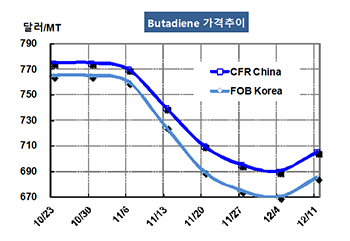 부타디엔(Butadiene)은 오랜만에 상승세로 전환됐다.