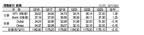 12월23일 국제유가는 미국 원유 재고의 예상 외 감소 및 미국 원유 시추리그 수 감소 등으로 상승했다.