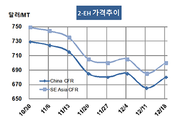 2-EH, FOB Korea 680달러로 15달러 상승 … 거래부진에 마진악화
