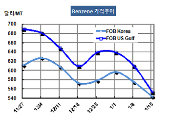 표, 그래프: < Benzene 가격추이 > <화학저널 2016/01/20> |