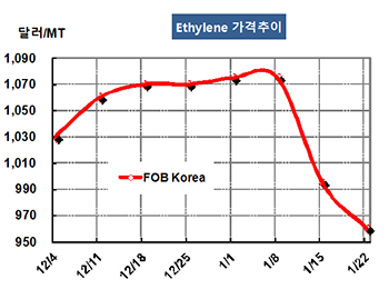 표, 그래프: < Ethylene 가격추이 > <화학저널 2016/01/25> |
