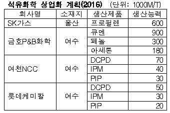2016년 상반기 YNCC에 하반기 롯데 가동 … SK가스․금호는 문제
