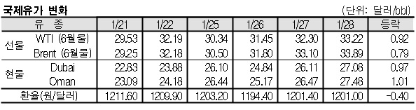 1월28일 국제유가는 사우디의 감산 제안 소식, 미국 달러화 약세 등으로 상승했다.