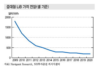 하지만, 리튬이온전지 가격은 하락세를 지속하고 있어 전기자동차 등 수요산업의 성장을 자극하는 요소 가운데 하나로 평가받고 있다.