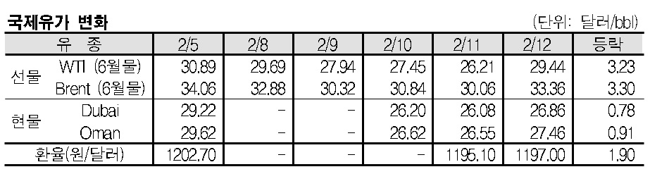WTI, 2월21일 29.44달러로 3.23달러 올라 … 브렌트유 33.36달러