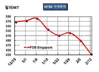 표, 그래프: < MTBE 가격추이 > <화학저널 2016/02/19> |