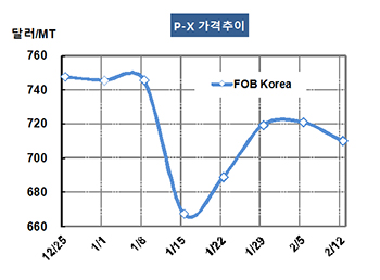 표, 그래프 : < P-X 가격추이 > <화학저널 2016/02/18> |