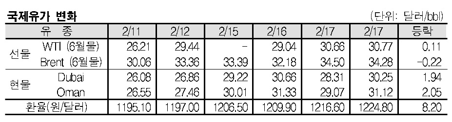 표, 그래프: <국제유가 변화> <화학저널 2016/02/19> |