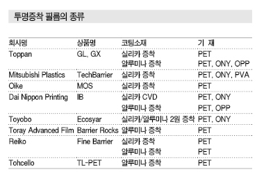 태양전지, OLED(Organic Light Emitting Diode) 백시트용 수증기 배리어 필름도 수요가 신장하고 있다.